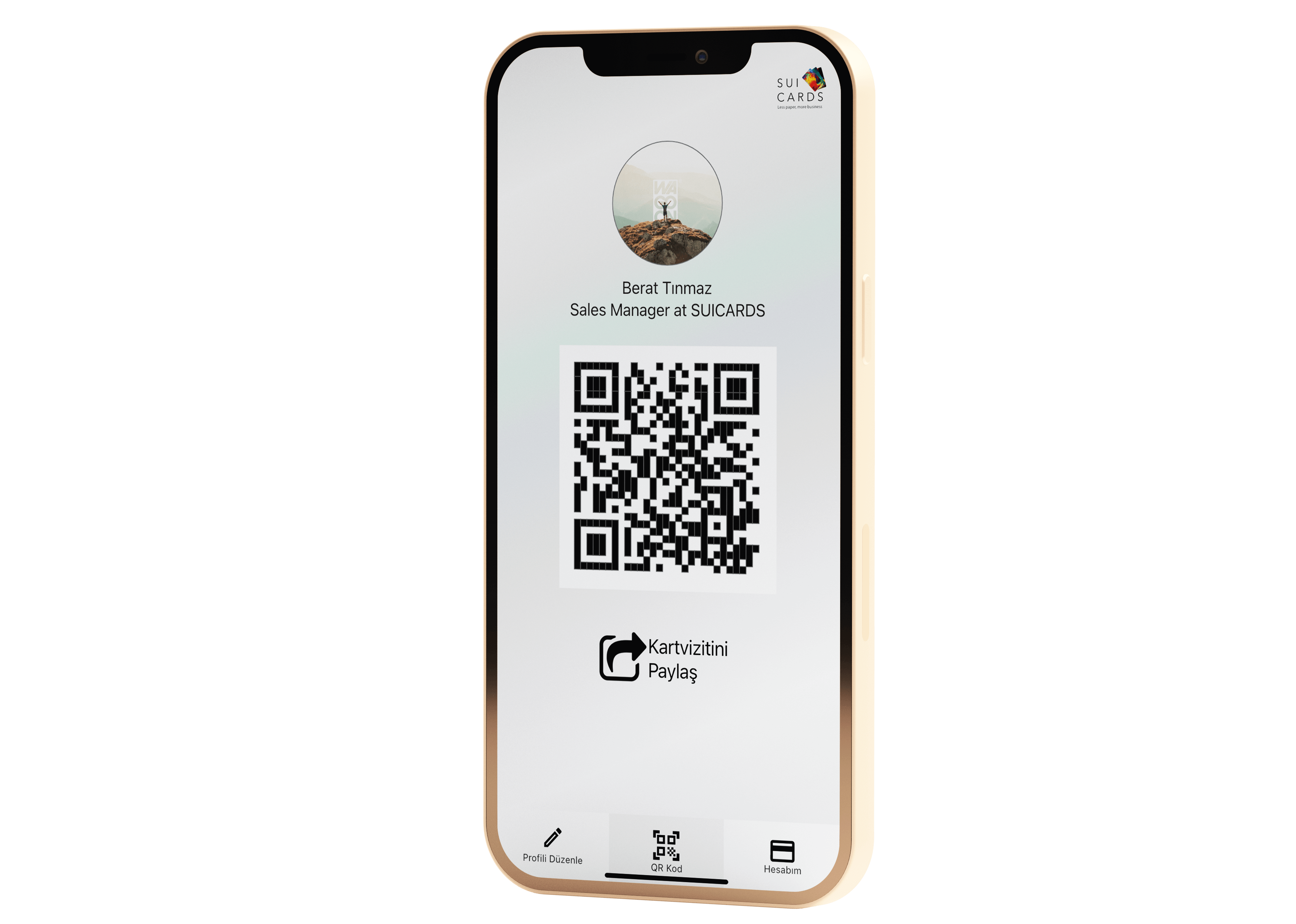 Profilinizi düzenledikten sonra artık QR kodunuzla tüm bilgilerinizi yeni tanıştığınız kişilerle paylaşabilirsiniz. Bilgilerinizi istediğiniz an istediğiniz şekilde değiştirin ve o an kullanmaya devam edin. Üstelik uygulamanızı dilerseniz sizin için tasarlamış olduğumuz birbirinden güzel NFC kartlarla eşleştirin, bilgilerinizi kartınızla paylaşmaya devam edin. Hem de kendi kurumsal tasarımınızla birlikte!